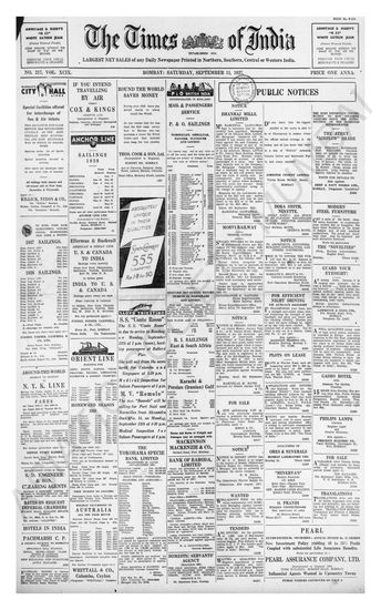 Times of India, September 11, 1937.