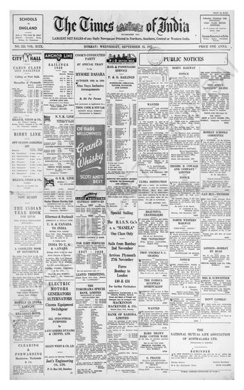 Times of India, September 15, 1937.