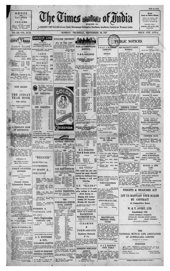 Times of India, September 30, 1937.