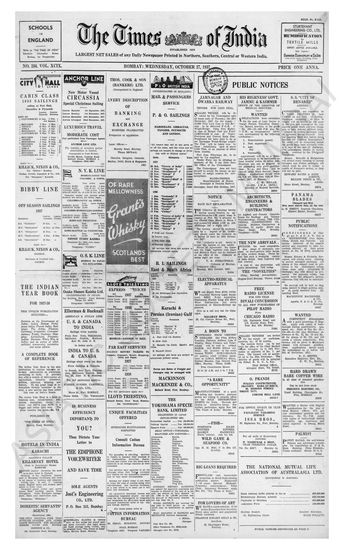Times of India, October 27, 1937.