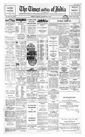 Times of India, November 26, 1937.
