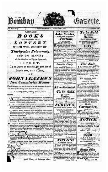 The Bombay Gazette (Weekly Edition), 23 February 1820