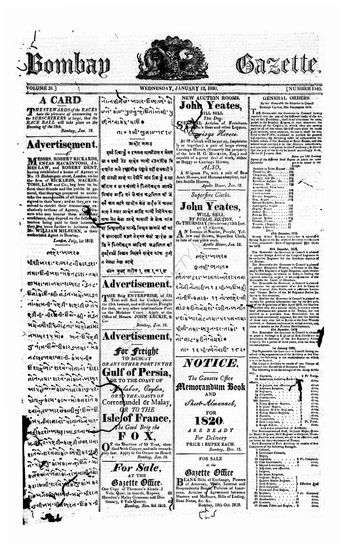 The Bombay Gazette (Weekly Edition), 12 January 1820