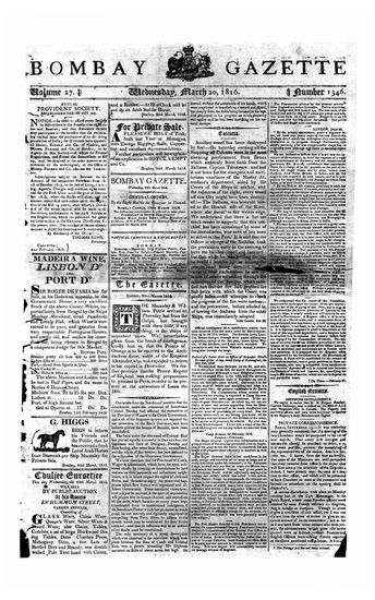 The Bombay Gazette (Weekly Edition), 20 March 1816