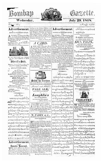 The Bombay Gazette (Weekly Edition), 29 July 1818