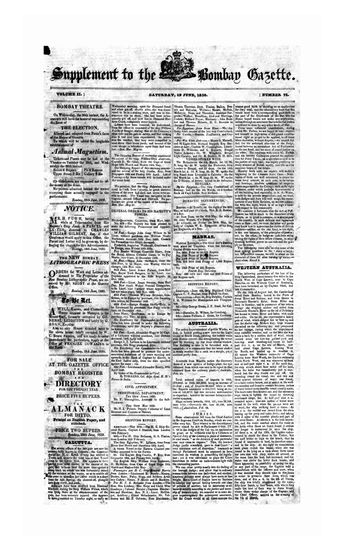 The Bombay Gazette (Weekly Edition), 19 June 1830