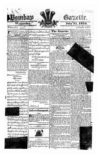 The Bombay Gazette (Weekly Edition), 31 July 1816