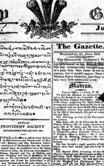 The Bombay Gazette, 31 July 1816