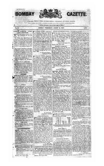 The Bombay Gazette (Weekly Edition), 19 August 1840