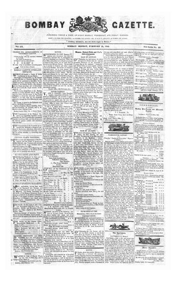 • The Bombay Gazette (Weekly Edition), 15 February 1841