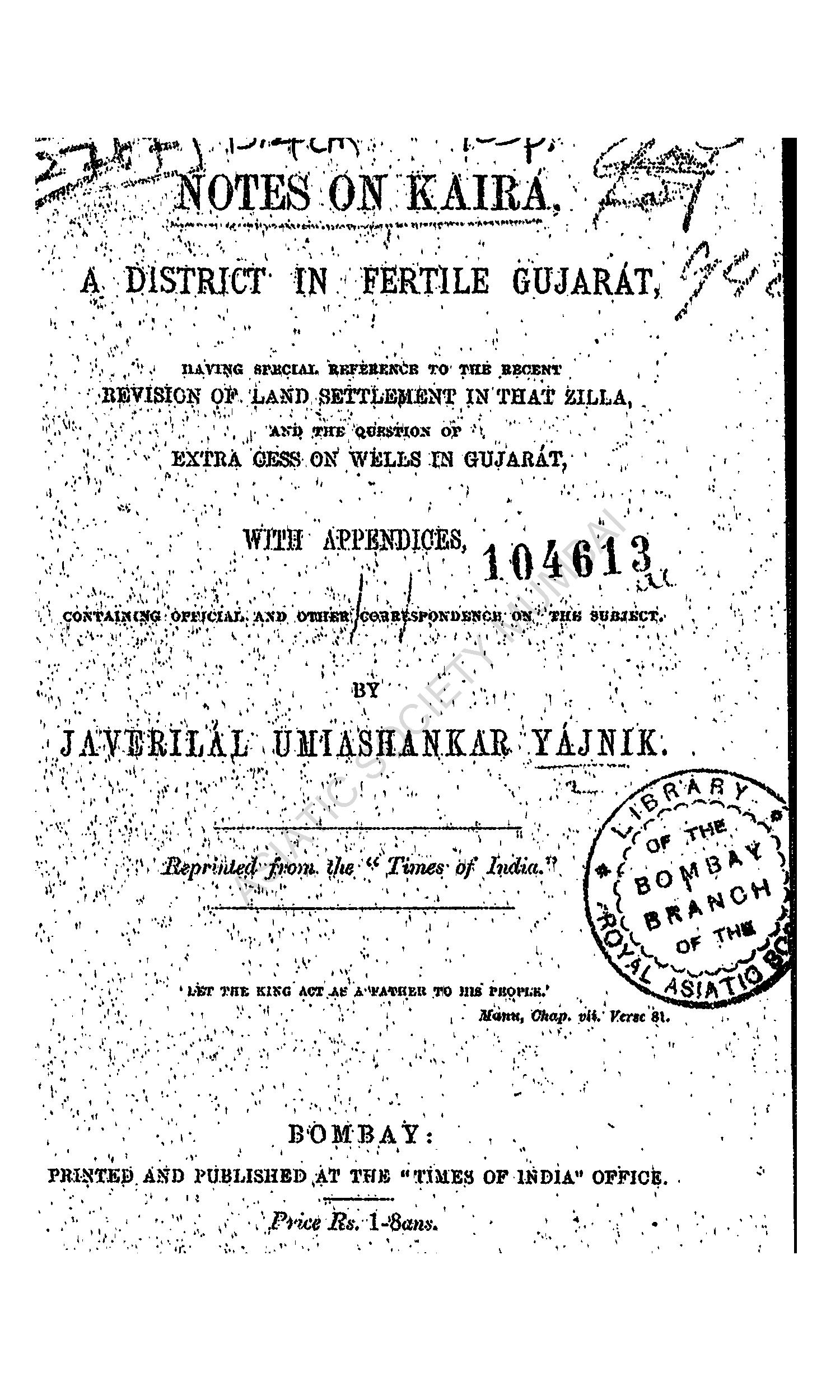Notes on Kaira: A District in Fertile Gujarat, having s ...