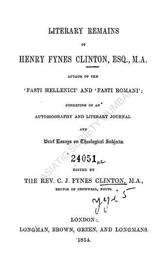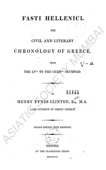 Fasti Hellenici: The Civil and Literary Chronology of Greece and Rome, from the CXXIVth Olympiad to the Death of Augustus, Vol. II