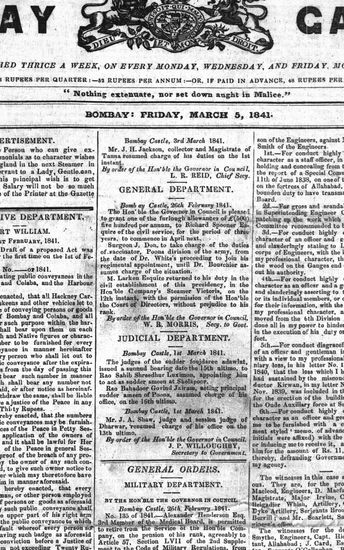 The Bombay Gazette (Weekly Edition), 5 October 1841