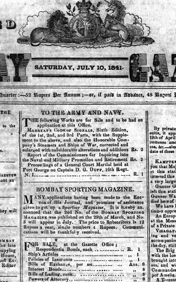 The Bombay Gazette (Weekly Edition), 10 July 1841