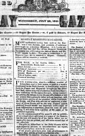 The Bombay Gazette, 28 July 1841