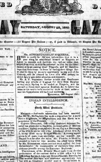 The Bombay Gazette, 28 August 1841