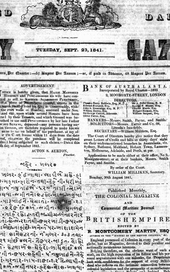 The Bombay Gazette, 28 September 1841