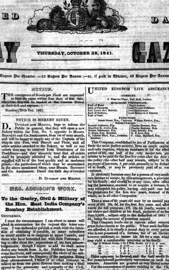 The Bombay Gazette, 28 October 1841