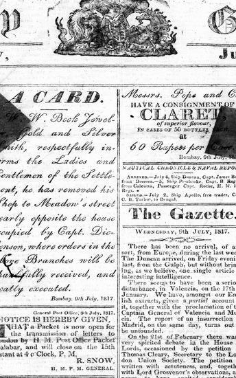 The Bombay Gazette (Weekly Edition), 9 July 1817