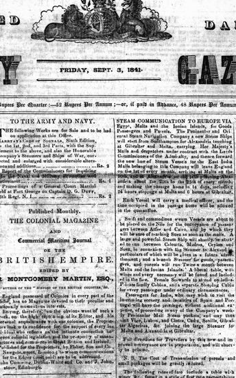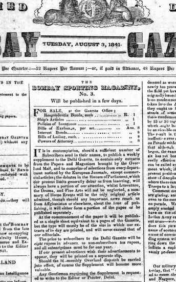 The Bombay Gazette, 3 September 1841