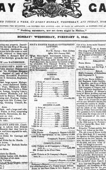 The Bombay Gazette, 3 August 1841