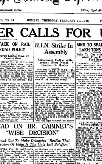 The Bombay Chronicle, 21 February 1946