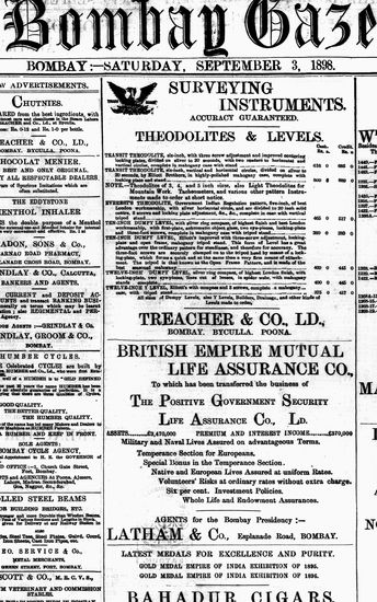 The Bombay Gazette, 3 September 1898