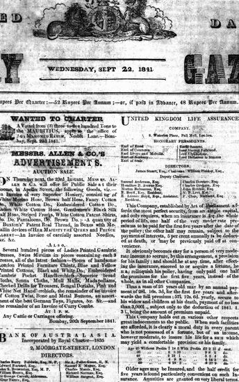 The Bombay Gazette (Weekly Edition), 22 September 1841