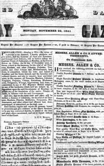 The Bombay Gazette (Weekly Edition), 22 November 1841