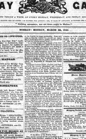 The Bombay Gazette (Weekly Edition), 22 October 1841