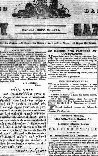 • The Bombay Gazette (Weekly Edition), 27 September 1841