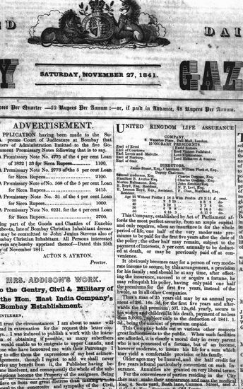 • The Bombay Gazette (Weekly Edition), 27 November 1841
