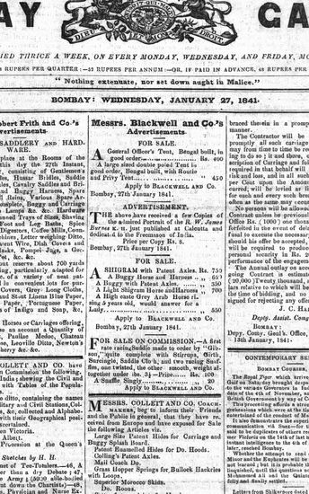 • The Bombay Gazette (Weekly Edition), 27 January 1841