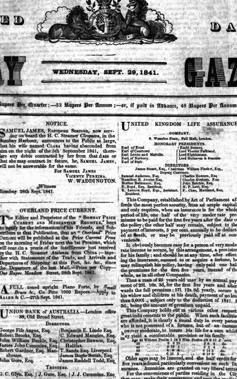 The Bombay Gazette, 29 September 1841
