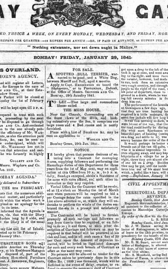 The Bombay Gazette, 29 January 1841