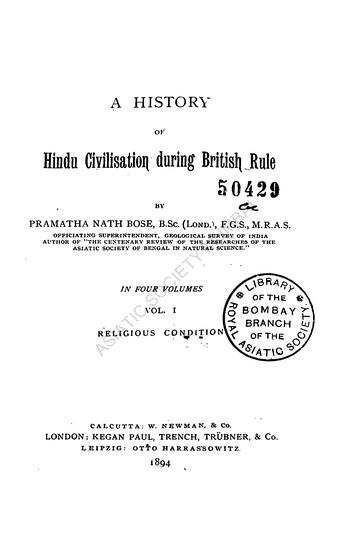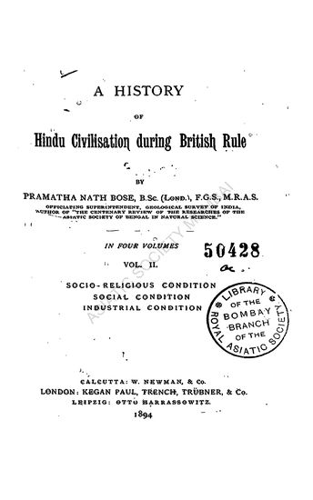 A History of Hindu Civilisation During the British Rule, in 4 Vols., Socio Religious Condition, Social Condition, Industrial Condition, Vol. II
