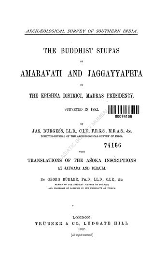 The Buddhist Stupas of Amaravati and Jaggayyapeta in the Krishna District Madras Presidency Surveyed in 1882 With Asoka Inscriptions at Jaugada and Dhauli