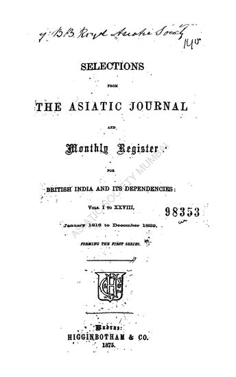 Selections From the - Asiatic Journal and Monthly Register for British India and its Dependencies: Jan. 1816 to Dec. 1829.