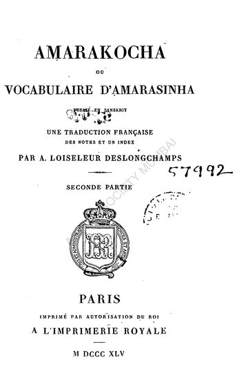 Amarakochal ou Vocabulaire D'amarasinha Une Traduction ...