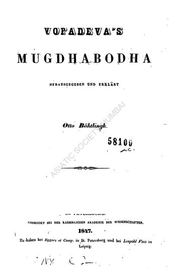 Vopadeva's Mugdhabodha Hreausgegeben Und Erklart