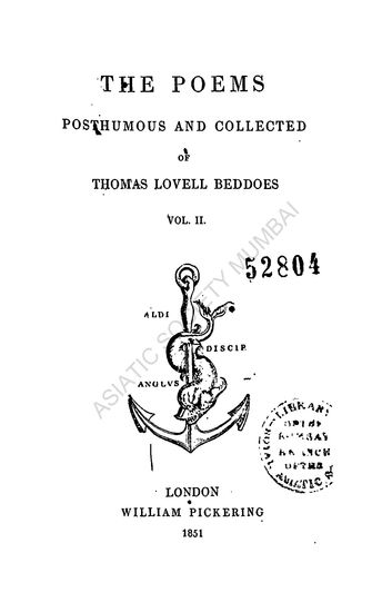The Poems Posthumous and Collected of Thomas Lovell Bed ...