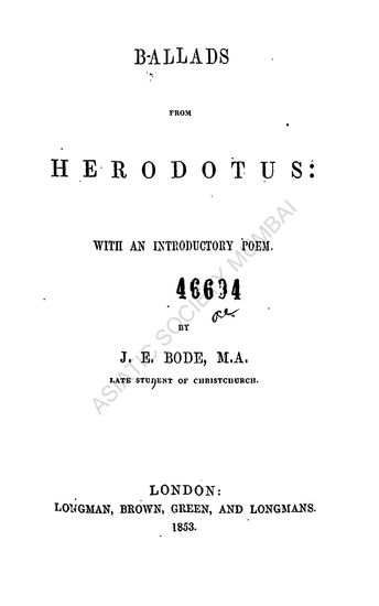 Ballads from Herodotus, with an Introductory Poem