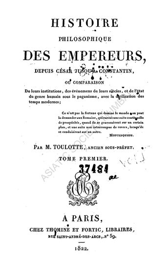 Histoire Philosophique des Empereurs; depuis Cesar jusqu'a Constantin, Vol. I