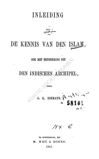 Inleiding tot de Kennis van de Islam ook met Betekking tot den Indischen Archipel