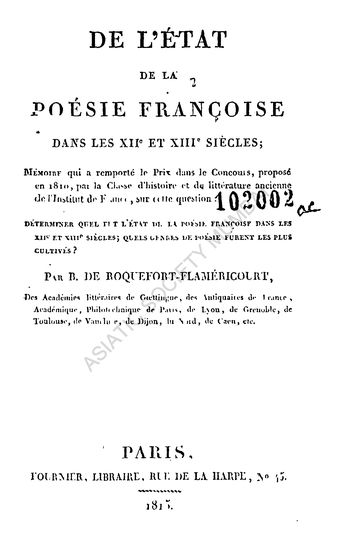 De l'Etat de la Poesie Francoise