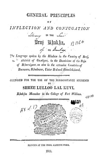 General Principles of Inflection and Conjugation in the Bruj Bhakha