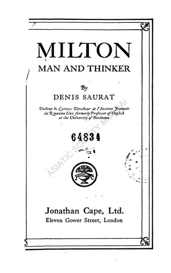 Milton: Man and Thinker