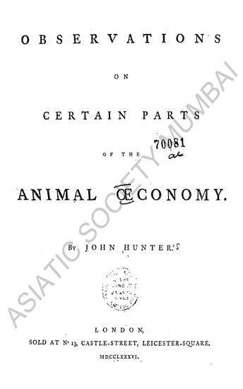 Observations on Certain Parts of the Animal Oeconomy