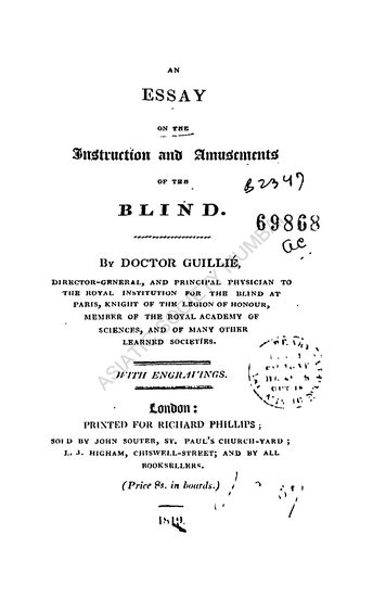 An Essay on the Instruction and Amusements of the Blind