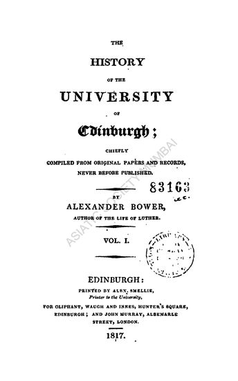 History of the University of Edinburgh, in Two Volumes, Vol. I
